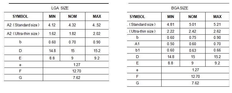 ⑤ Lead Configuration: "Y" or "V". "V" represents Land Grid Array (LGA) packaging, while "Y" represents Ball